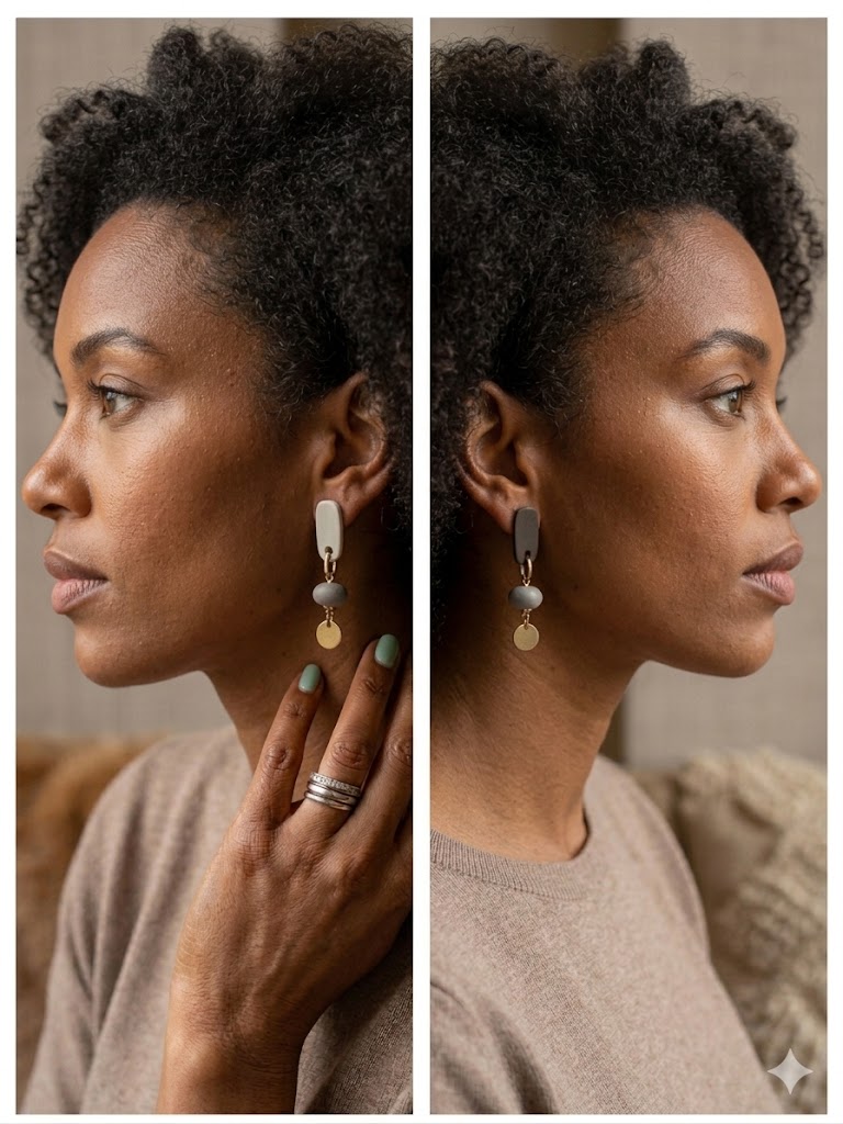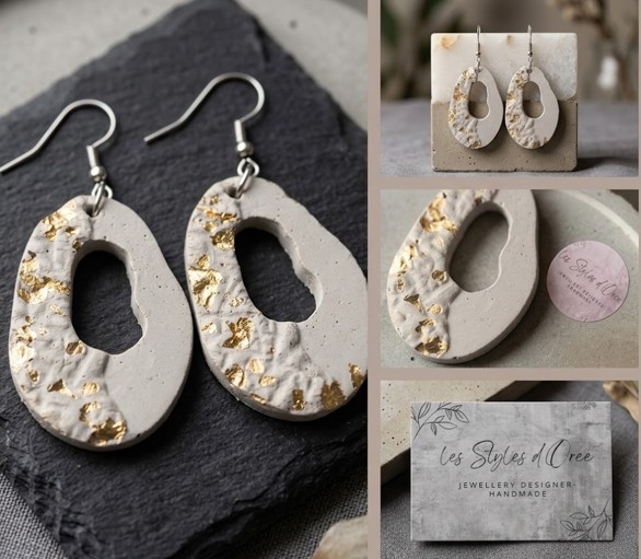 Boucles d'oreilles asymétriques composées de perles béton et d'apprêts en acier inoxydable doré 20,00 € 0,00 €