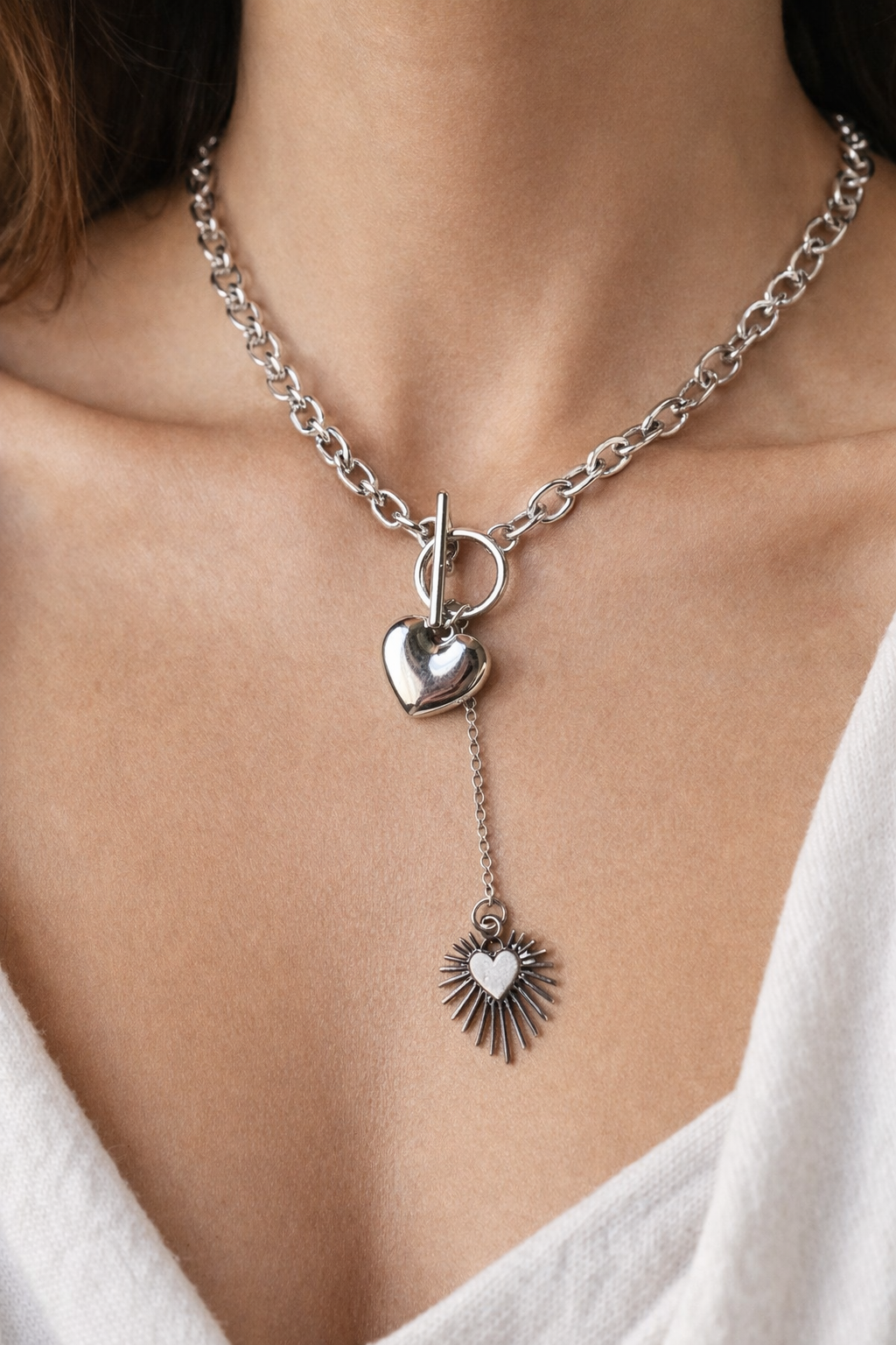 Collier en acier inoxydable composé d'un pendentif en forme de coeur composé de ramages en acier 17,00 € 0,00 €