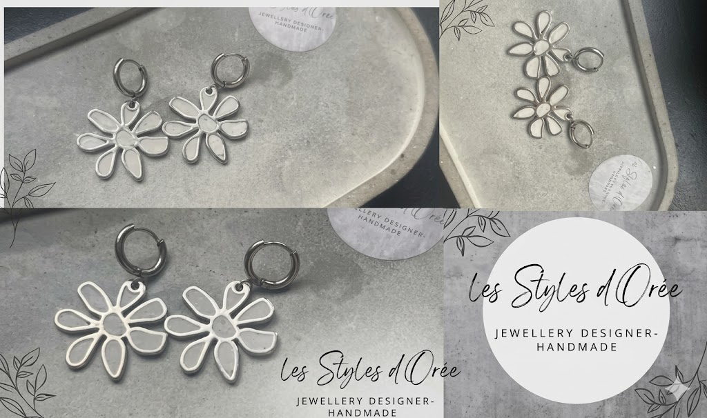 Collier en acier inoxydable composé d'une fleur en jesmonite recouverte de feuilles d'agent 15,00 € 0,00 €
