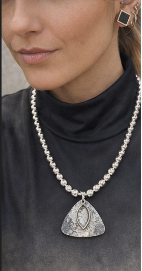 Collier en argent composé d'un pendentif en jesmonite recouvert d'une feuille d'argent Épuisé 0,00 € 0,00 €