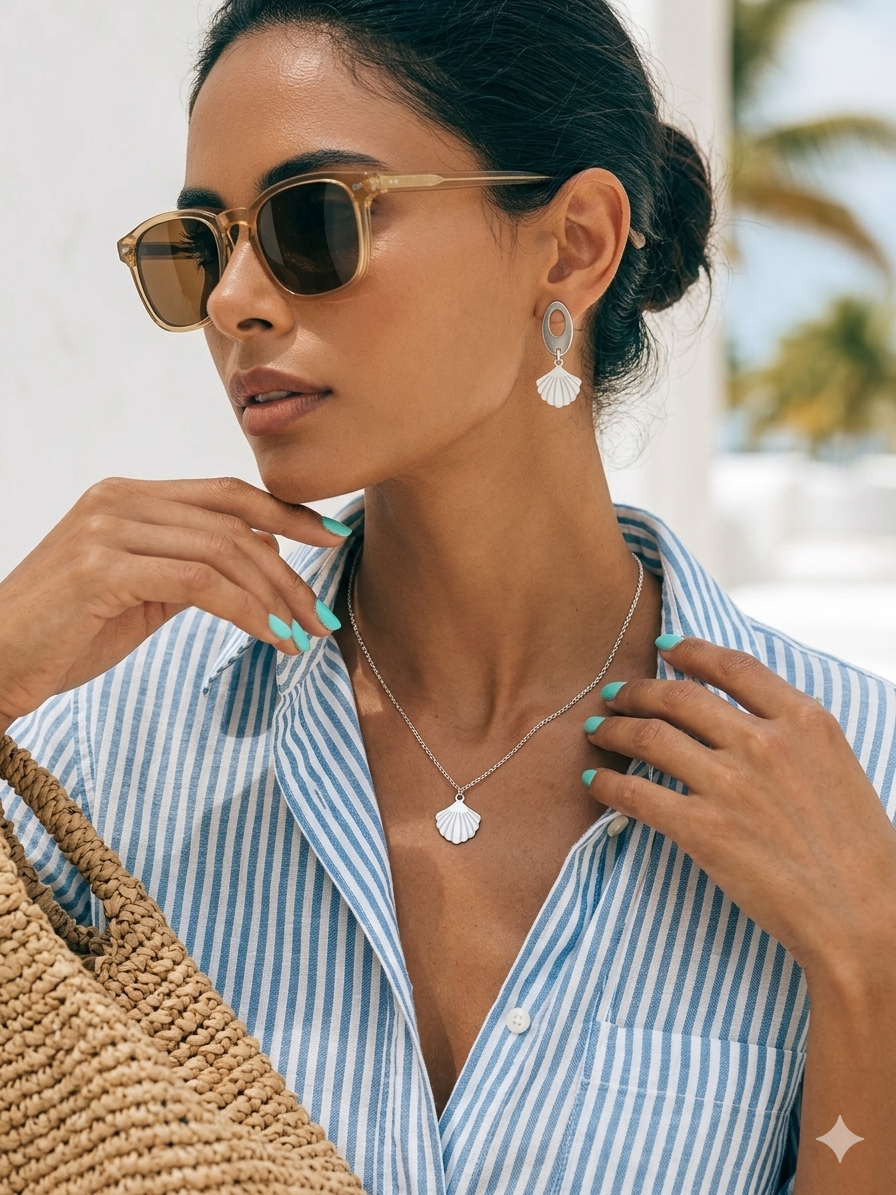 Boucle d’oreilles en acier inoxydable composées de coquillage et béton