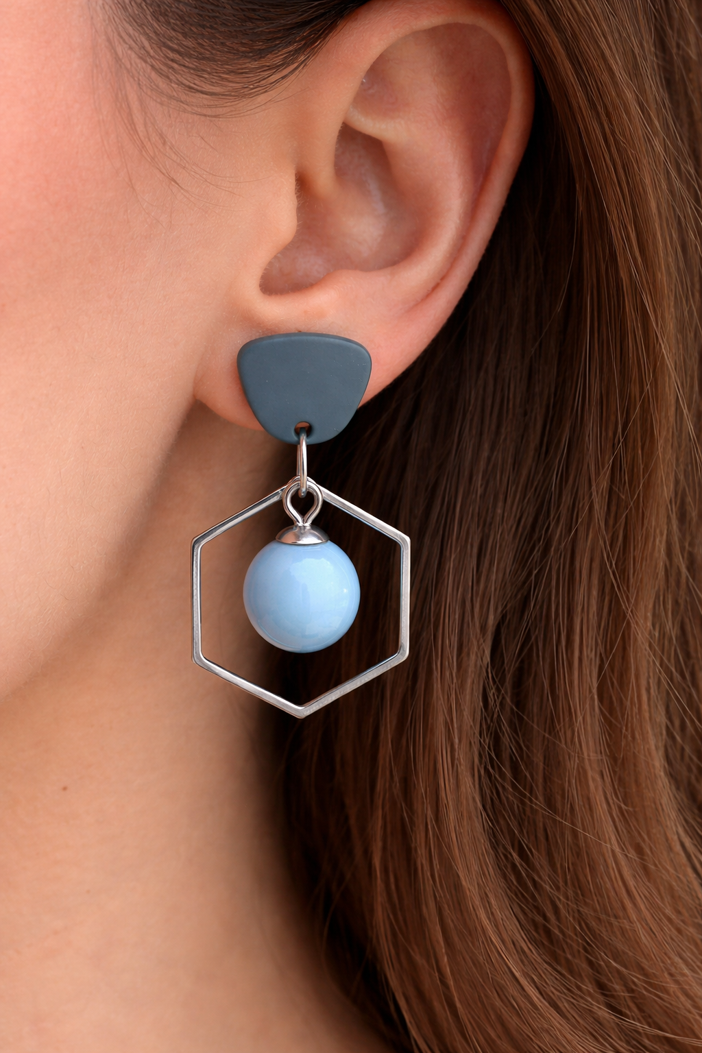 Boucles d'oreilles composées de perles de verre et d'apprêts hexagonaux en acier inoxydable