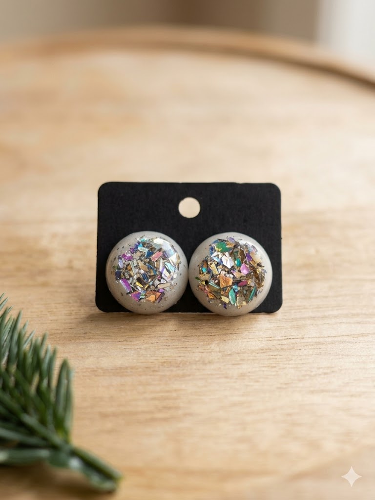 Boucles d'oreilles dômes en béton et pierres