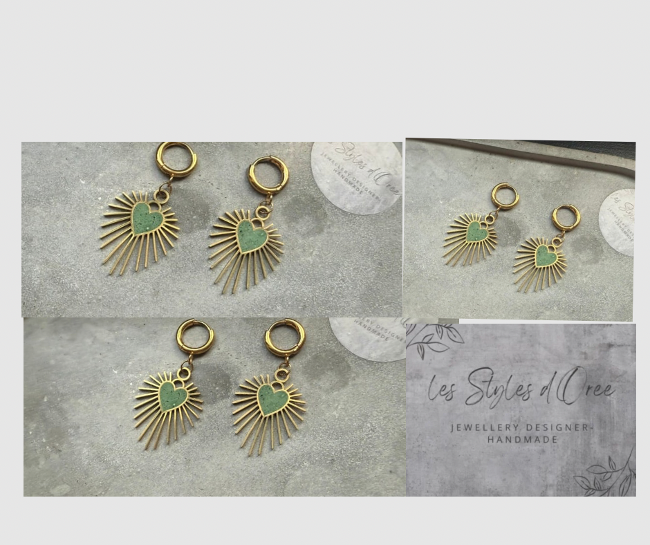 Boucles d'oreilles en acier doré et coeur en jesmonite verte