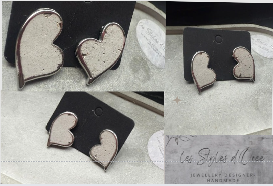 Boucles d'oreilles en acier inoxydable argenté coeur et béton