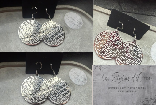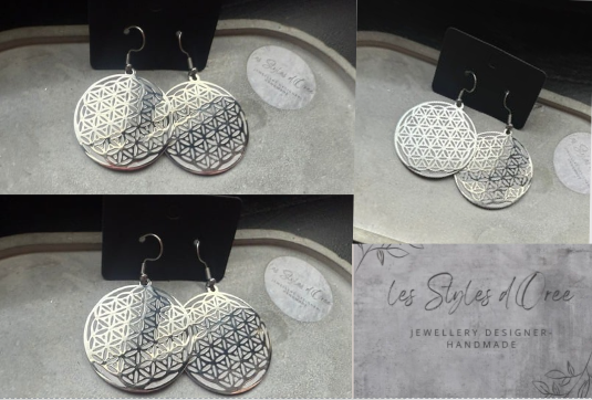 Boucles d'oreilles en acier inoxydable argenté fleur de vie et béton