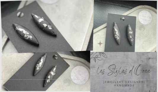 Boucles d'oreilles en Jemsonite noire et feuille d'argent