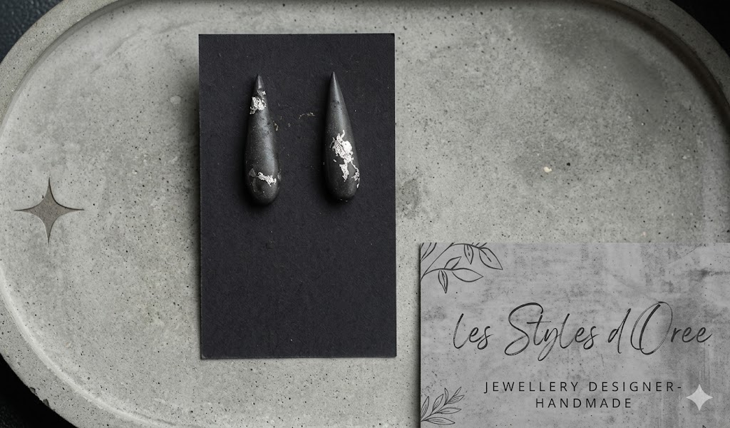 Boucles d'oreilles en Jesmonite noire et feuille d'argent