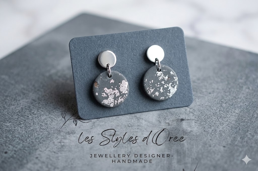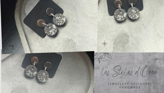Boucles d'oreilles en Jesmonite noire et feuille d'argent