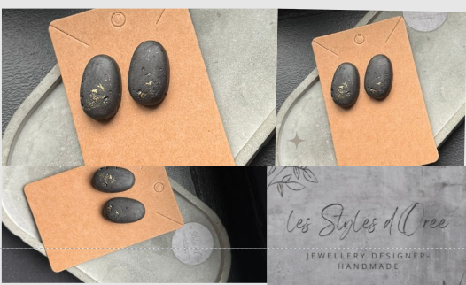 Boucles d'oreilles en jesmonite noire et feuille d'or