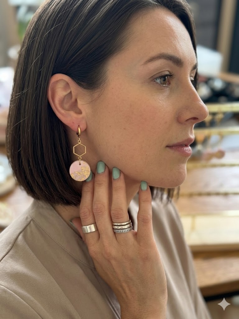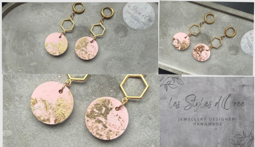 Boucles d'oreilles en jesmonite rose composées d'apprêt en acier doré