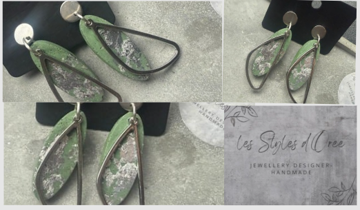 Boucles d"oreilles en jesmonite verte et feuille d'argent
