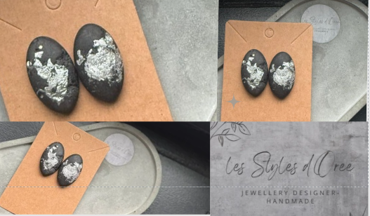 Boucles d'oreilles jesmonite noire et feuille d'argent