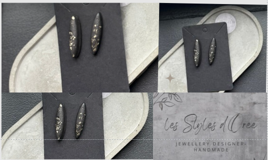 Boucles d'oreilles Jesmonite noire et feuille d'argent