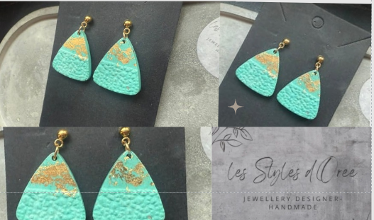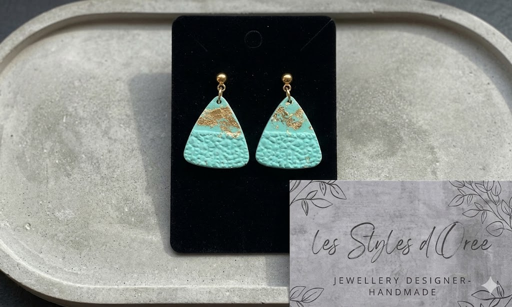 Boucles d'oreilles jesmonite turquoise et feuille d'or