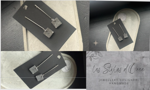 Boucles d'oreilles pendantes acier et carré en Jesmonite et feuille d'argent
