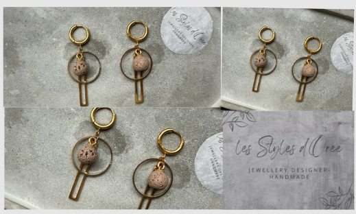 Boucles d'oreilles perles de lave et formes géométriques en acier