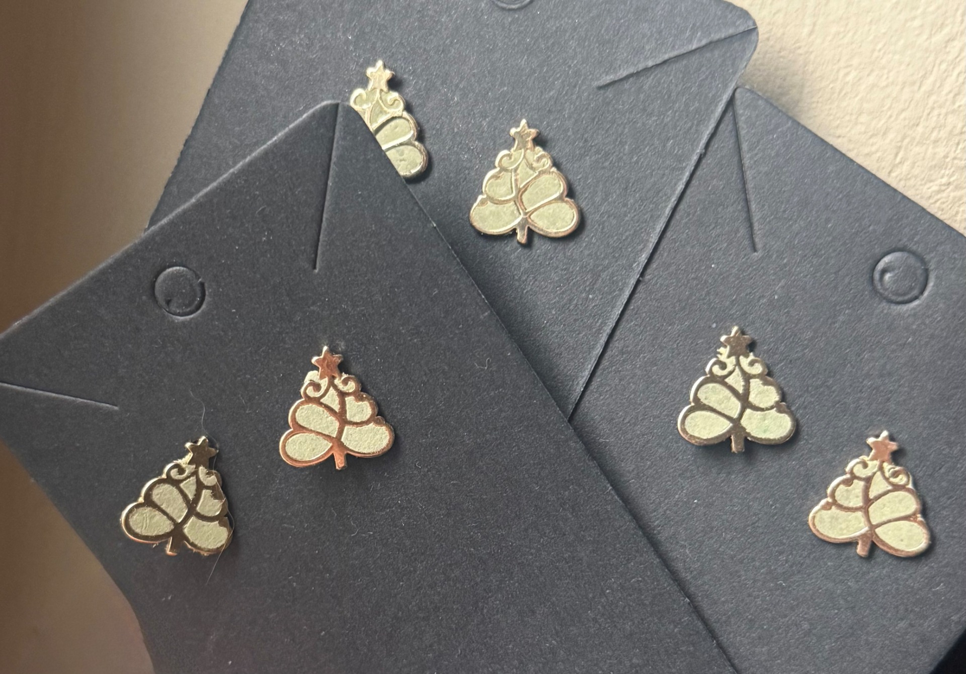 Boucles d'oreilles sapin et béton vert en acier inoxydable doré
