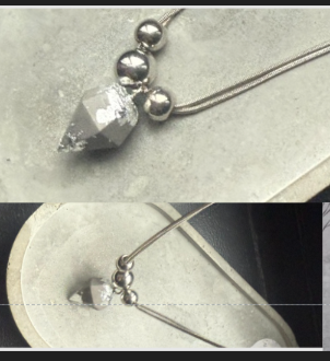 Collier en acier composé de perles d'acier et d'un pendentif en Jesmonite grise et feuille d'argent