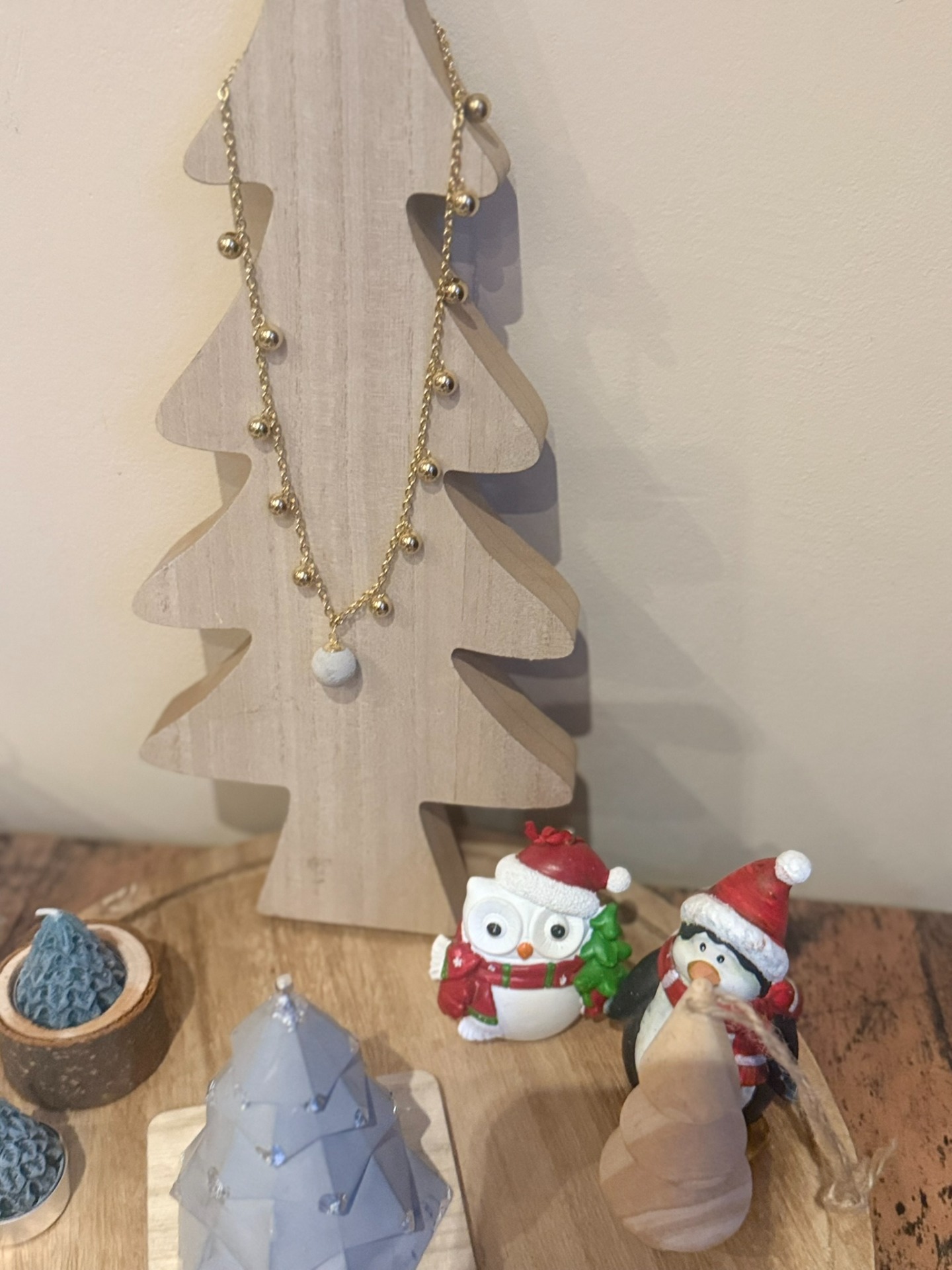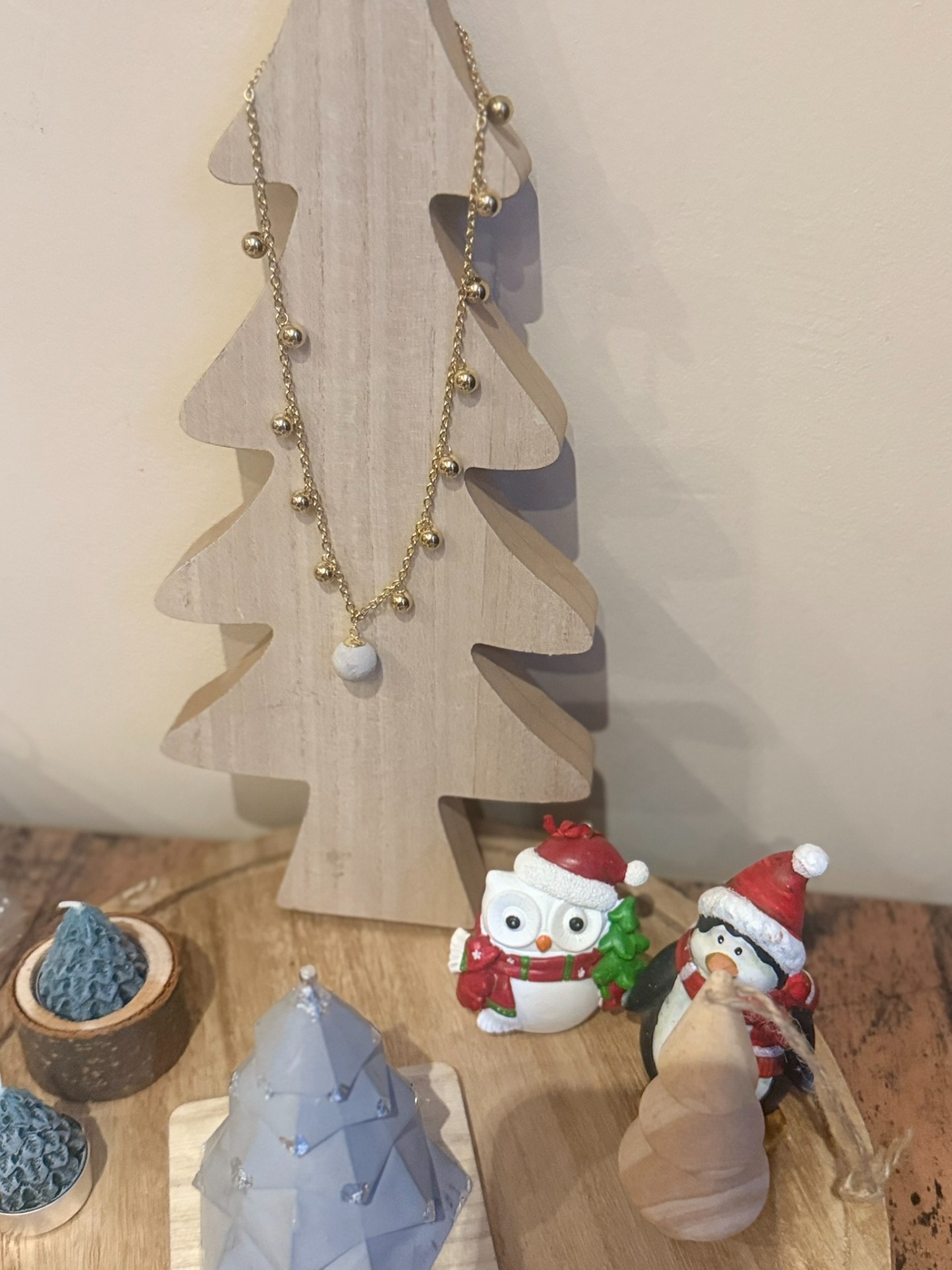 Collier en acier doré inoxydable composé de perles dorées et de perle béton