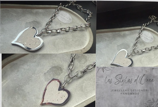 Collier en acier inoxydable argenté composé d'un pendentif en forme de coeur et béton