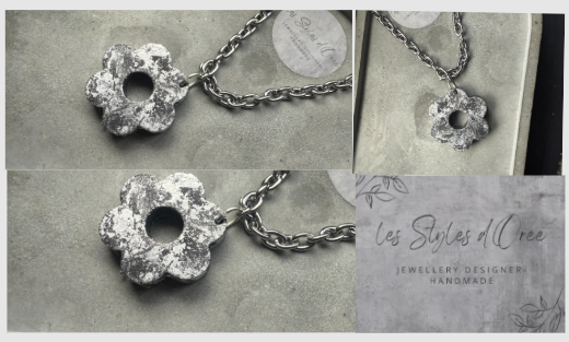Collier en acier inoxydable composé d'une fleur en jesmonite recouverte de feuilles d'agent