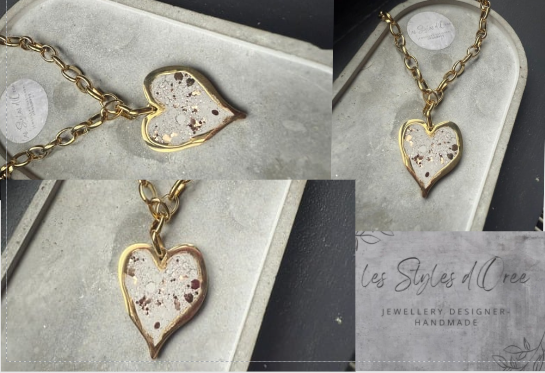 Collier en acier inoxydable doré composé d'un pendentif en forme de coeur béton et paillettes dorées