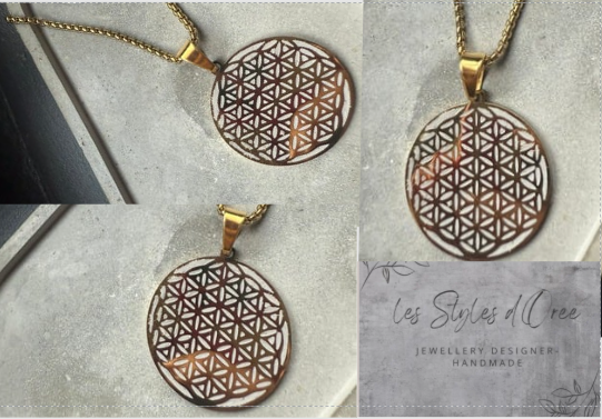 Collier en acier inoxydable en acier doré composé d'un pendentif fleur de vie en béton
